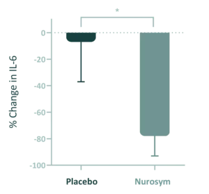 La inflamación en todo el cuerpo y el cerebro contribuye al desarrollo y la progresión de enfermedades, al envejecimiento y a los problemas de salud mental. En un ensayo controlado aleatorizado de neuromodulación con Nurosym, los niveles de citocinas inflamatorias fueron significativamente más bajos en el grupo que recibió Terapia de Neuromodulación Vaginal Auricular en comparación con el grupo de placebo al final de los 3 meses.